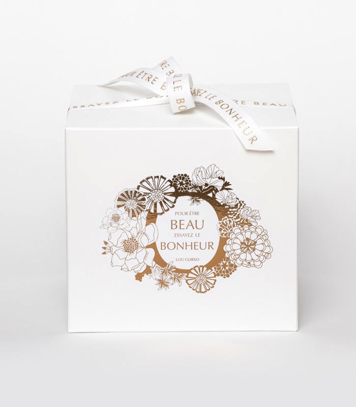 La bougie parfumée Beau Bonheur Parfums de Maison "Lou Corso" développe un accord floral intense et subtil de fleurs blanches printanières qui s'envolent et exalent pour terminer sur la fleur de Tiaré, estivale et chaleureuse pour une ambiance florale et ambrée.