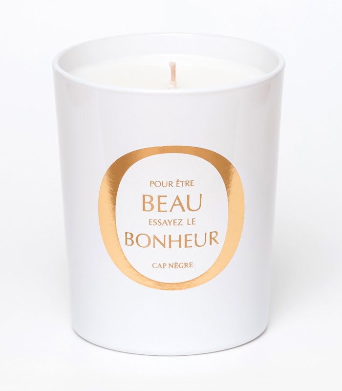 La bougie parfumée Beau Bonheur Maison Cap Nègre évoque un fameux domaine de la côte Varoise situé au Lavandou. Des demeures ancestrales magnifiques qui surplombent la Méditerranée. Des parfums subtiles de rose et de patchouli s'envolent au grè du mistral...