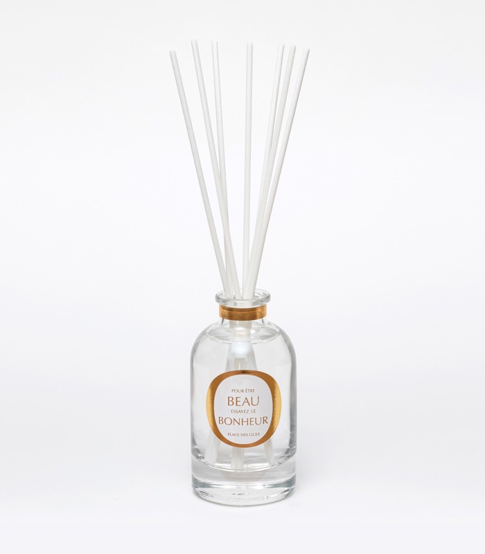 PLACE DES LICES diffuseur de parfum 100mlLe parfum d'intérieur Beau Bonheur Maison Place des Lices développe des accords autour de l'art du thé avec des accents légèrements fumés. Quelques notes de citron et de bergamote façon earl grey.